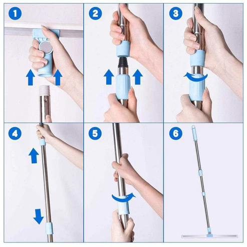 يمكنكي التحكم في طول وحجم الذراع بسهولة لتتمكني من الوصول لكل الأماكن بمجرد فتح وغلق القفل الموجود بالممسحة بعد تحديد الطول المستخدم.